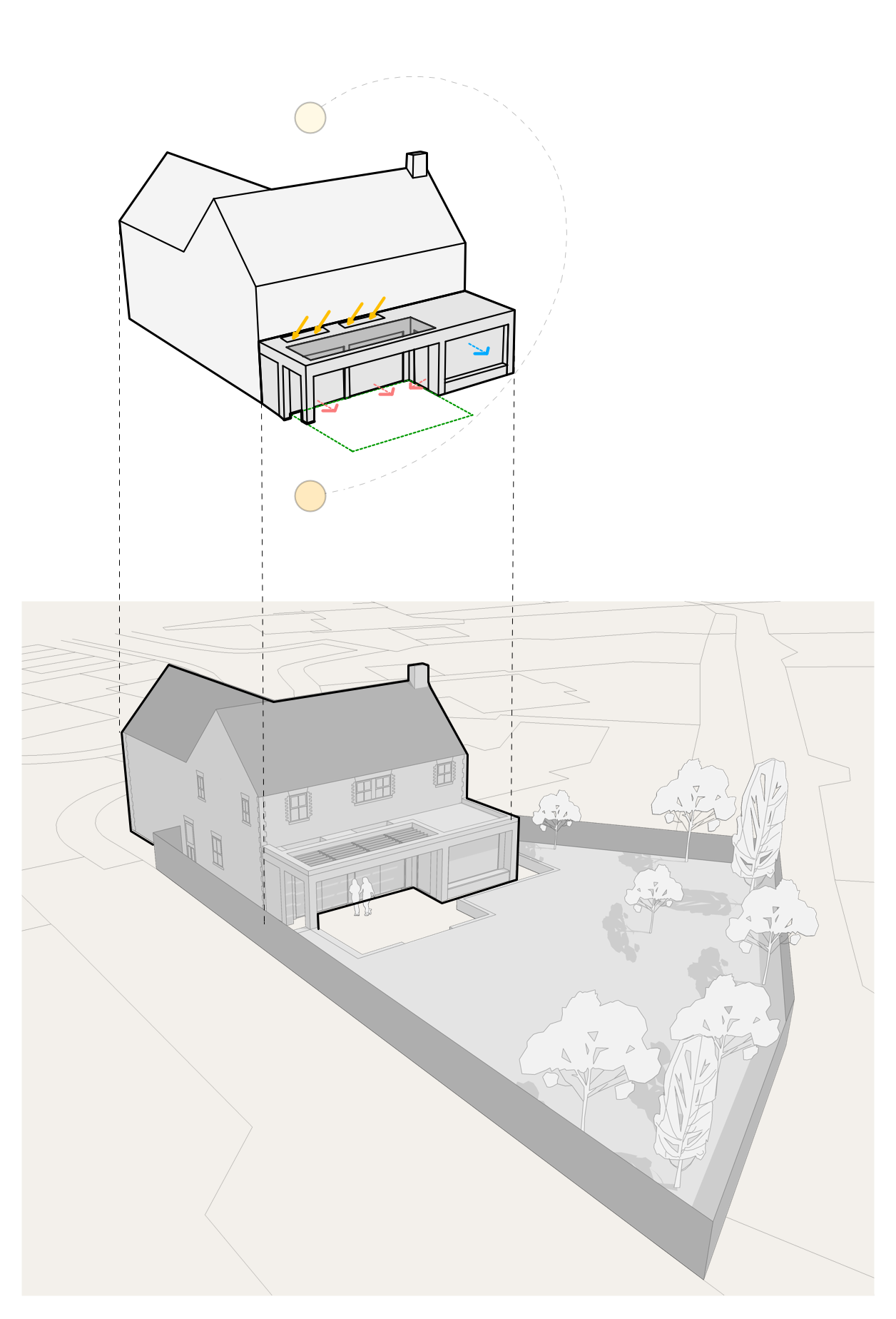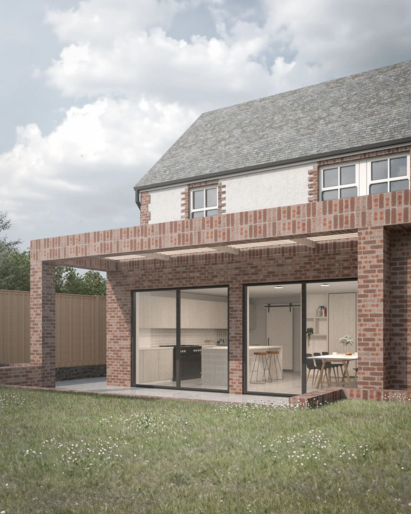 Architecturally, the extension sits as a contemporary counterpart to the main house, its clean lines and refined detailing complementing the traditional massing without imitation. Brickwork ties the new structure to its context, while the full-height glazing introduces a clarity and openness previously missing from the home. The rear elevation has been re-formed to maximise transparency, connection, and accessibility — key considerations for the clients and their future needs. The unified plan strengthens the relationship between interior spaces and the garden, ensuring that light, warmth, and landscape remain central to the architecture. The result is a subtle yet transformative intervention: a home that feels both renewed and deeply rooted in its National Park setting.