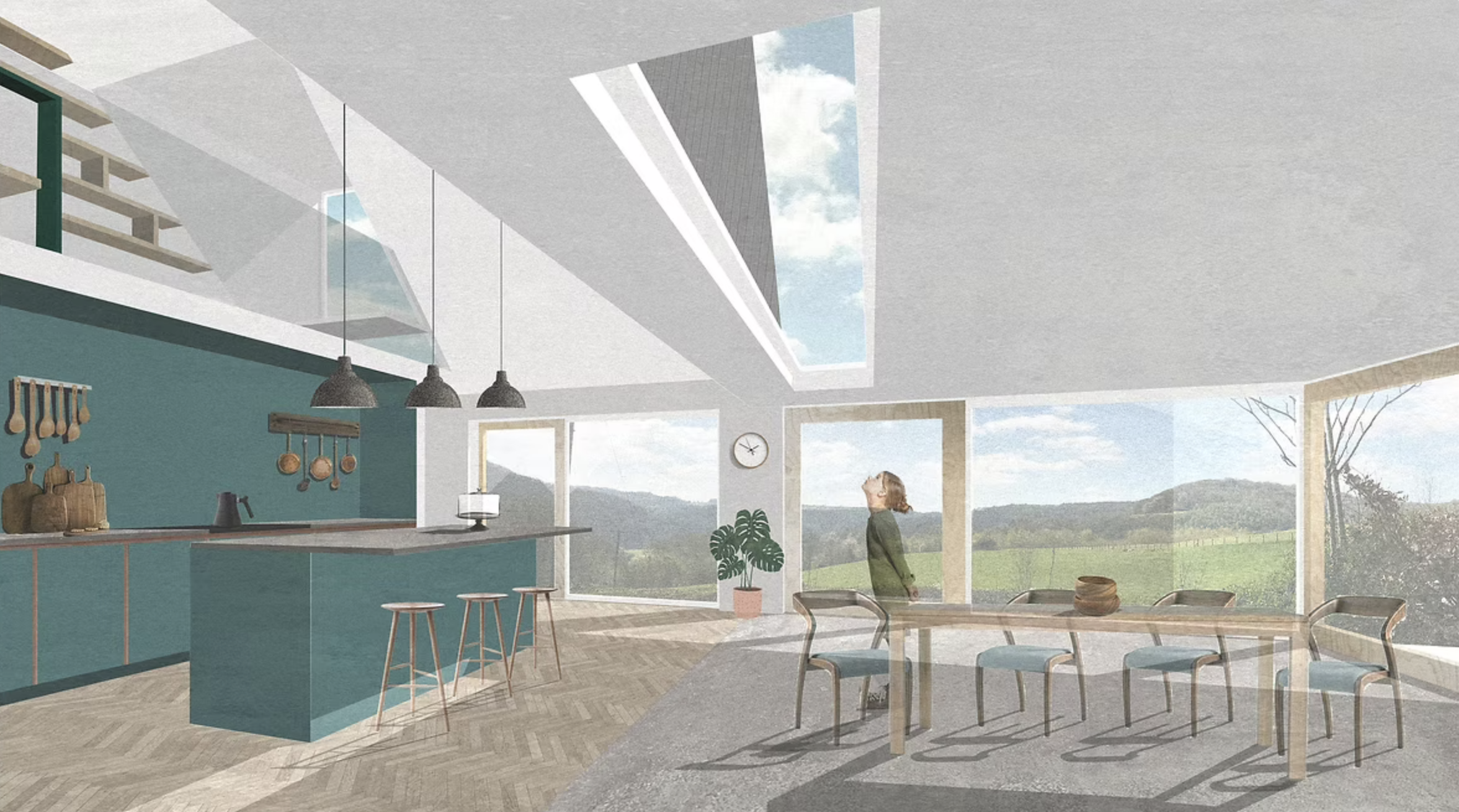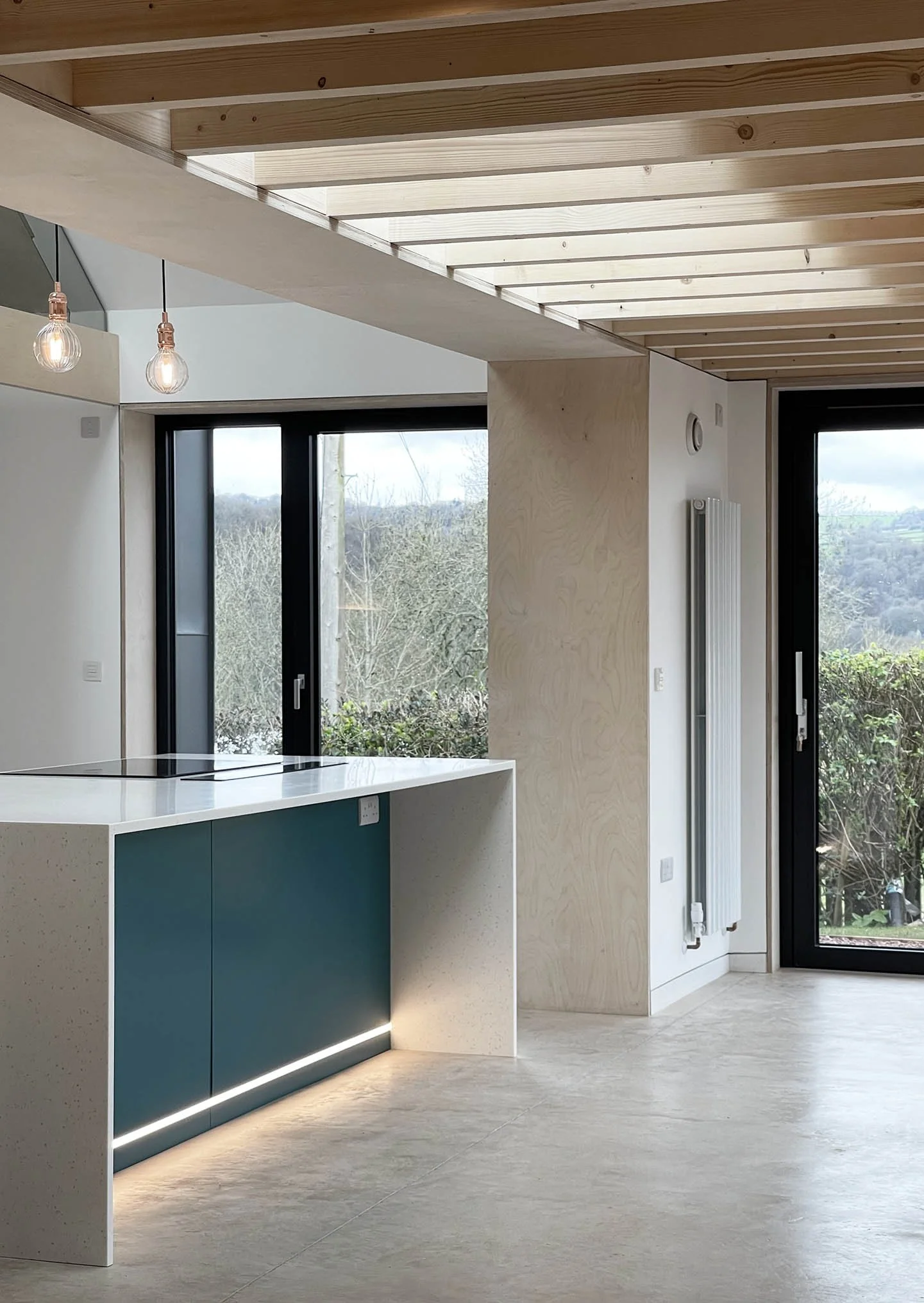 In the gentle contours of the Lower Wye Valley, The Sunny House quietly reimagines a modest timber bungalow into a light-filled, low-energy home for modern family life. Built to Passivhaus standards, the new design remains grounded in its setting — shaped by long views, local vernacular, and the soft rhythms of the landscape.