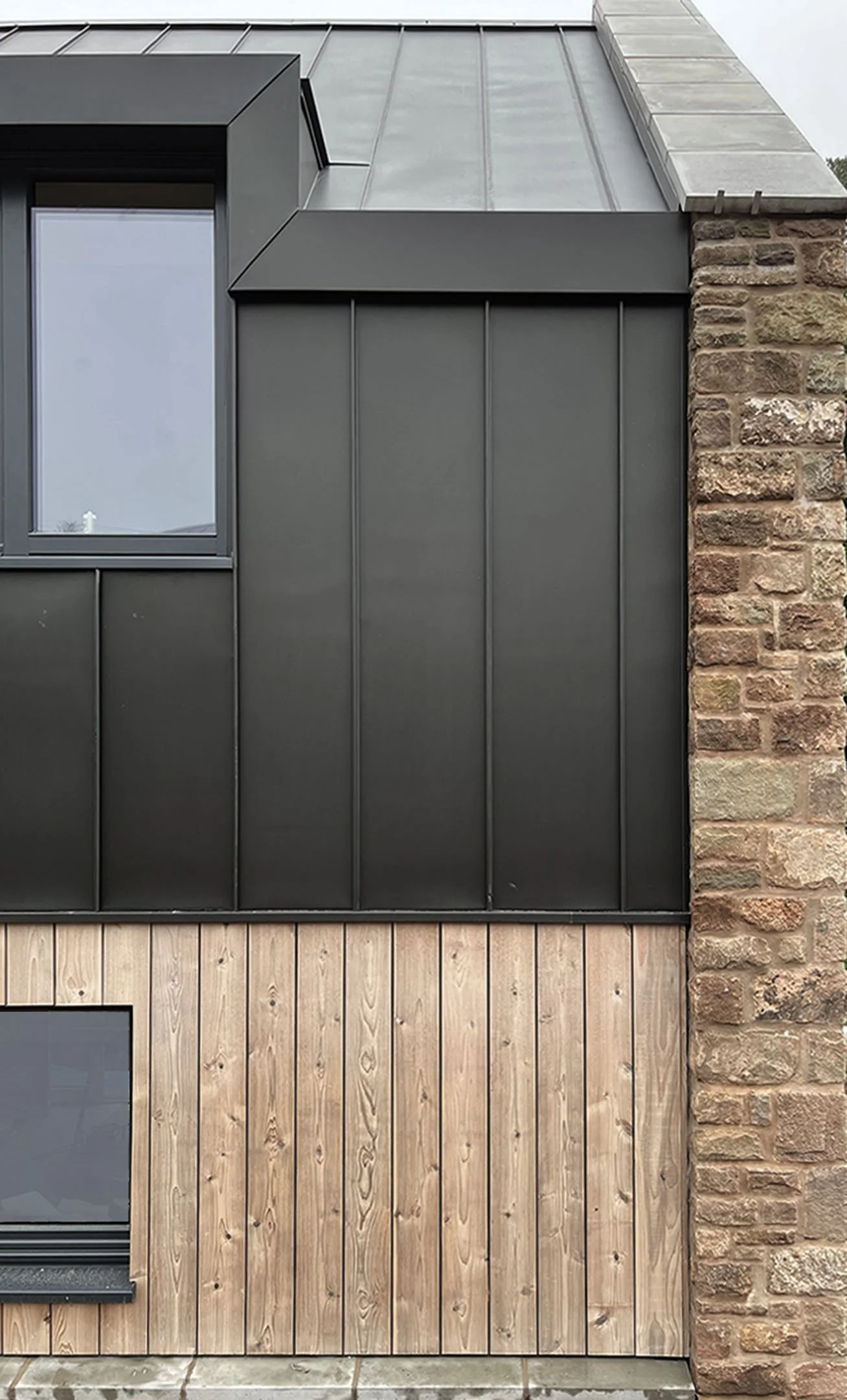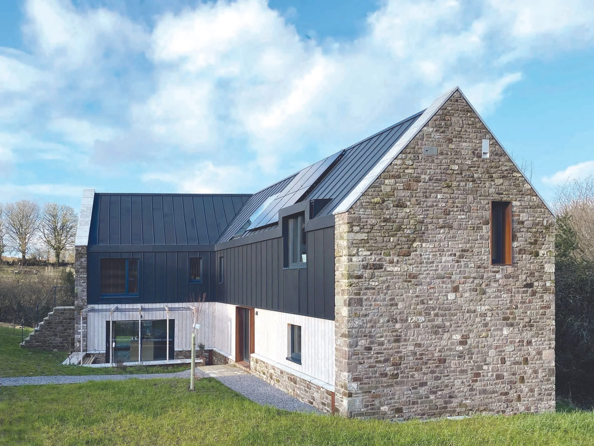 Set on a sloping site, built to PassivHaus standards, this low-energy home replaces a derelict cottage with a contemporary design that follows the land and sun. An angled form, open-plan layout, and carefully placed windows create strong connections to the landscape, while playful elements and quiet retreats support evolving family life. Locally inspired materials — stone, raw timber, and standing seam metal roof — anchor the building in its agricultural context, while sustainable, low-energy strategies underpin a thoughtful response to both setting and use.