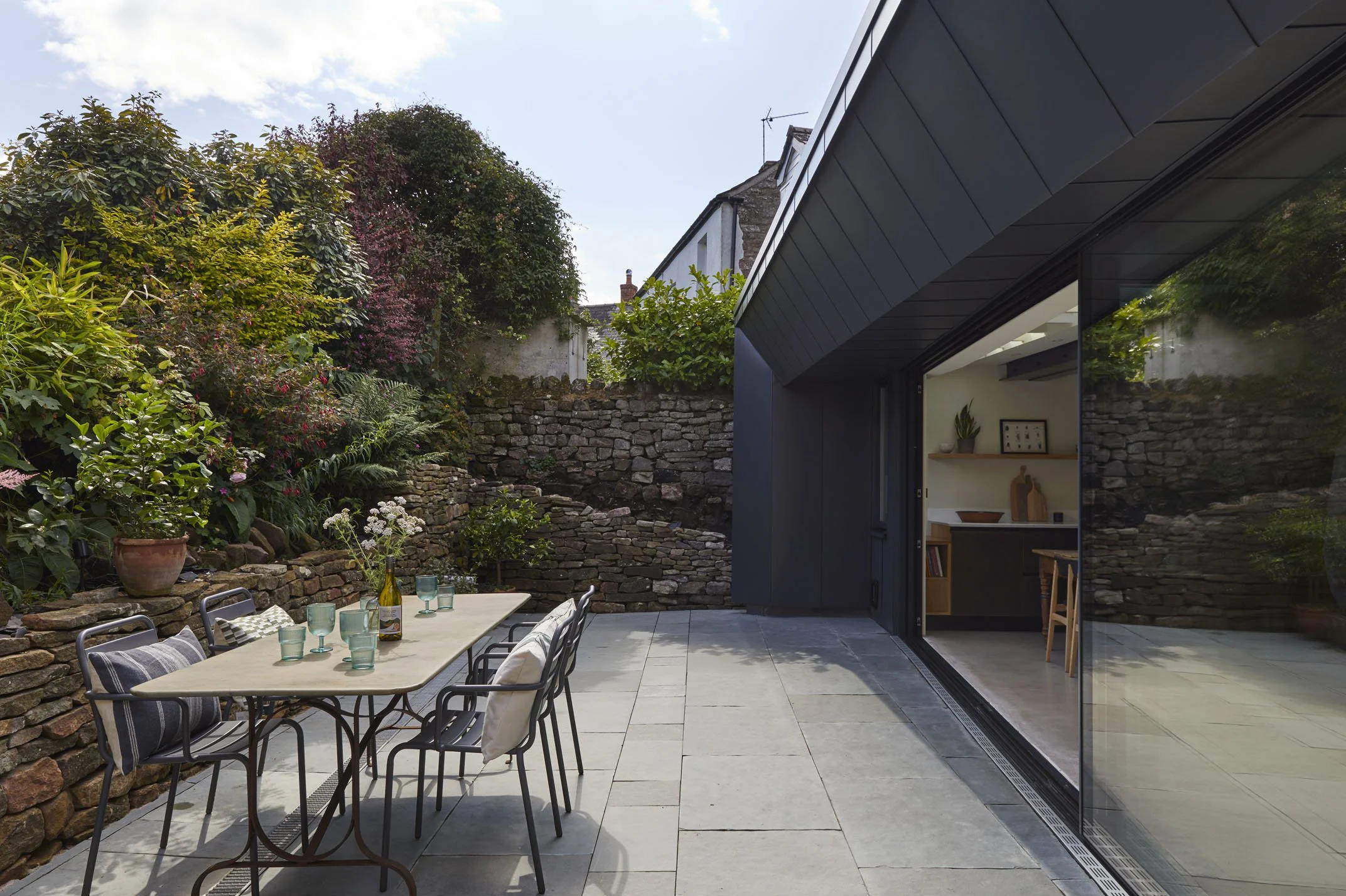 Hidden behind a traditional stone cottage in the heart of the lower Wye Valley National Landscape, The Moat House unfolds as a home of thoughtful contrasts — where heritage meets contemporary clarity, and where the past is honoured through the careful shaping of the present. Nestled within mature gardens and sheltered from the rural lane above, the cottage holds a sense of timeless charm. The new rear extension, calm and understated in its presence, gently rebalances the home, opening it to light, landscape, and a renewed way of living.